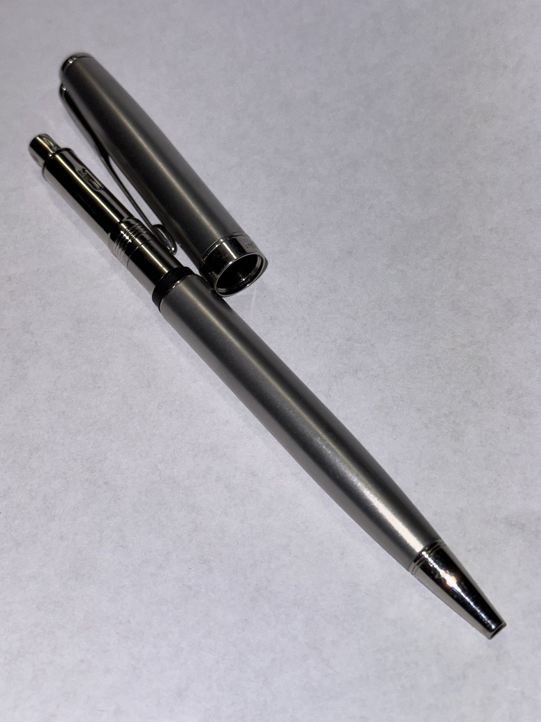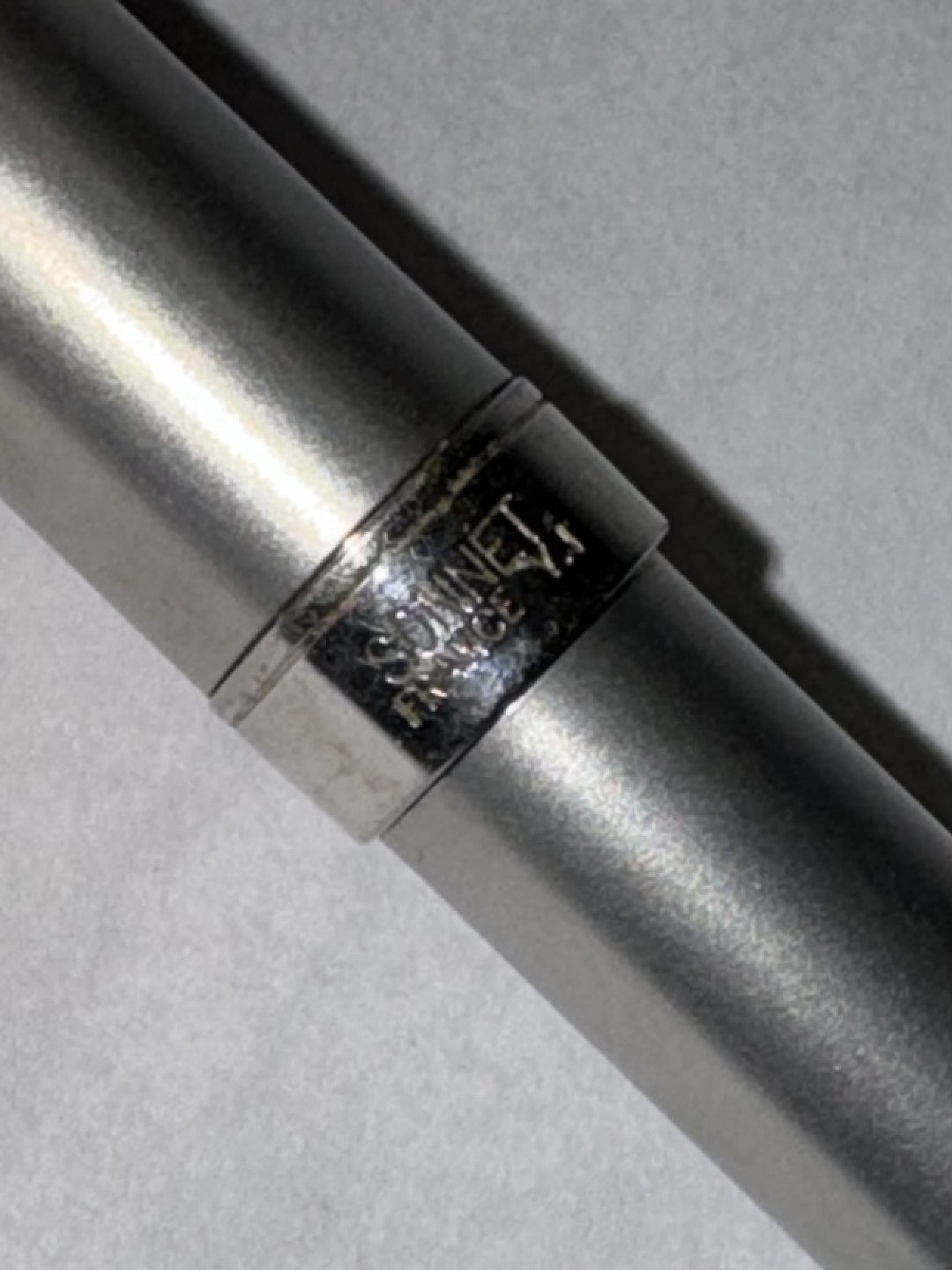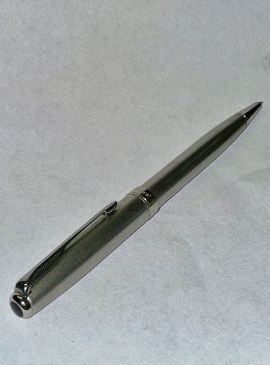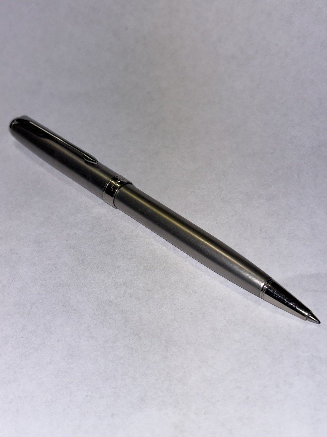 MADE IN FRANCE: Parker Sonnet kuglepen i Stål og Chrome. I god stand. Klar til at blive brugt. Virker med ældre refill. Sort “perle” på toppen. længde 13,5 cm