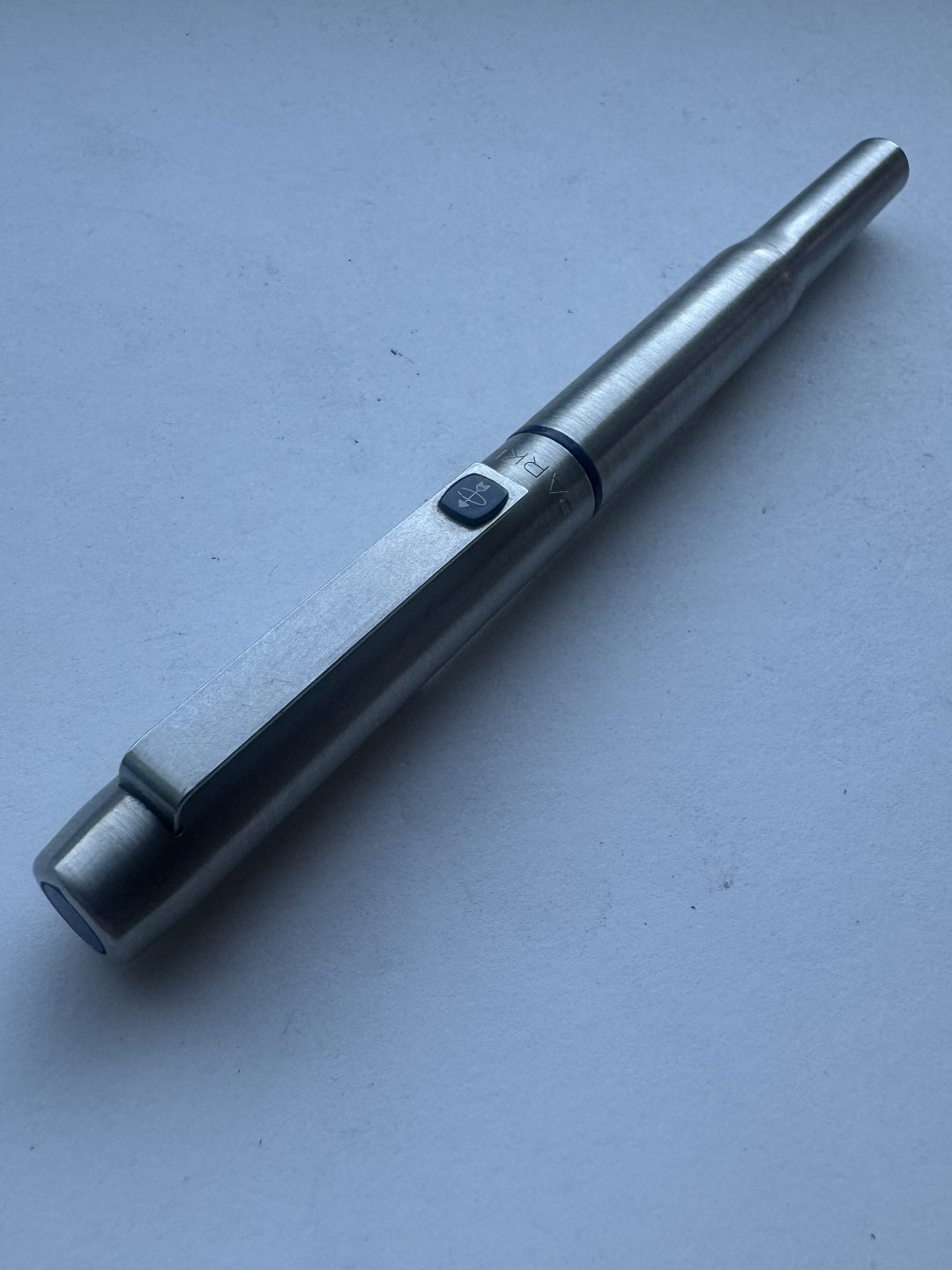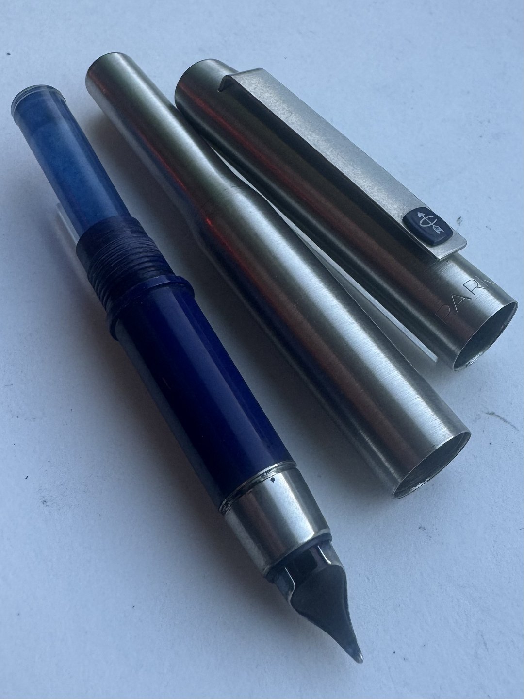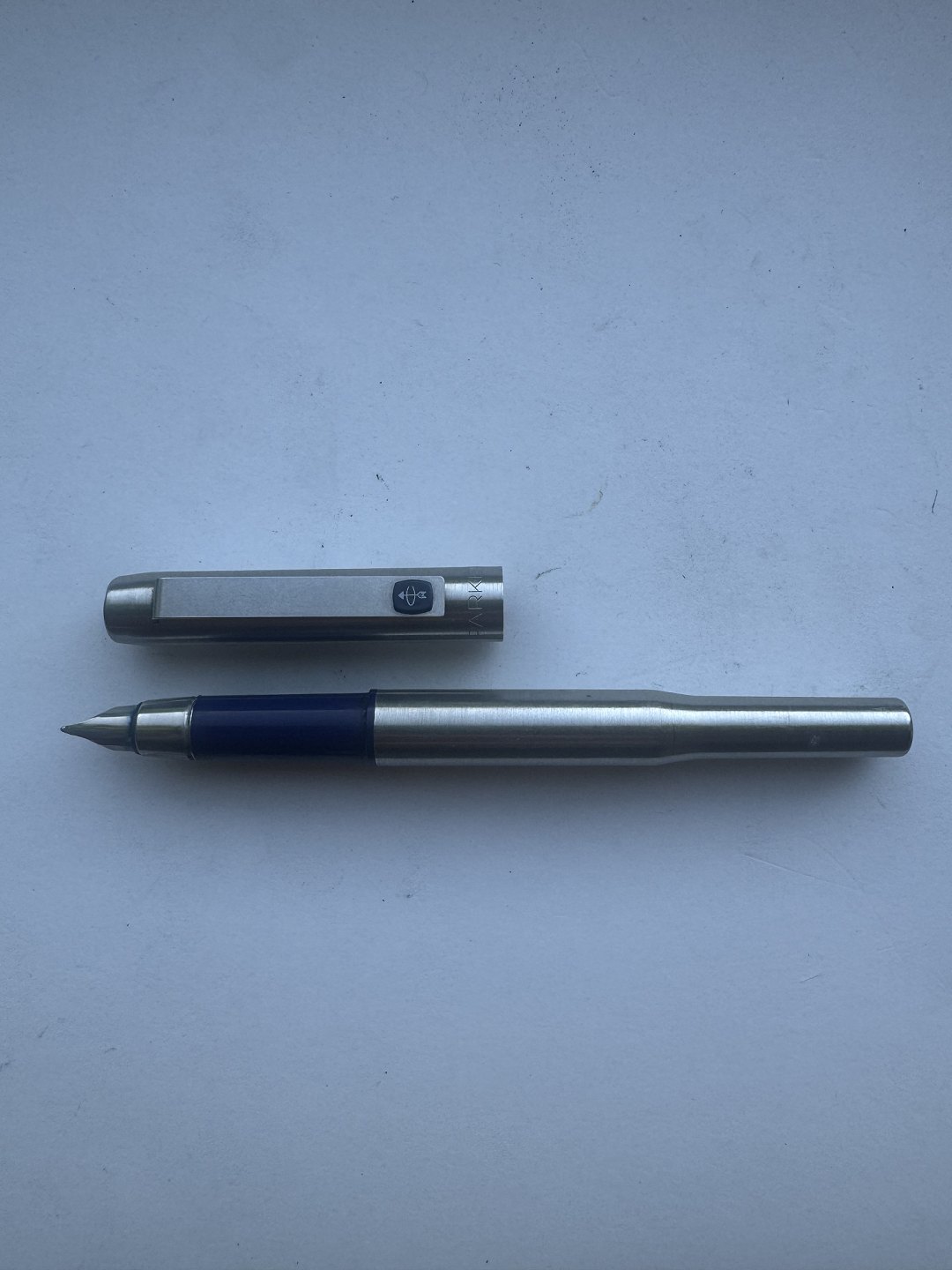 Parker 25 fyldepen i stål fremstillet fra midt i 1970’erne i England. Fremstår i god og skriveklar stand, når der bliver indsat en ny refill blækpatron. 13,2 cm lang.