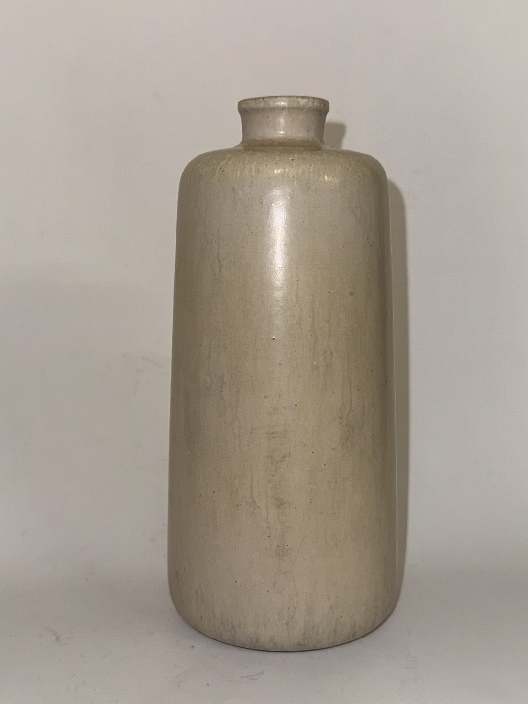Keramik vase fra Saxbo. Dækket af en lys creme glasur. Fremstillet i Danmark omkring 1945. I god stand. Fabriksmærket på bunden. H. 18,5 cm