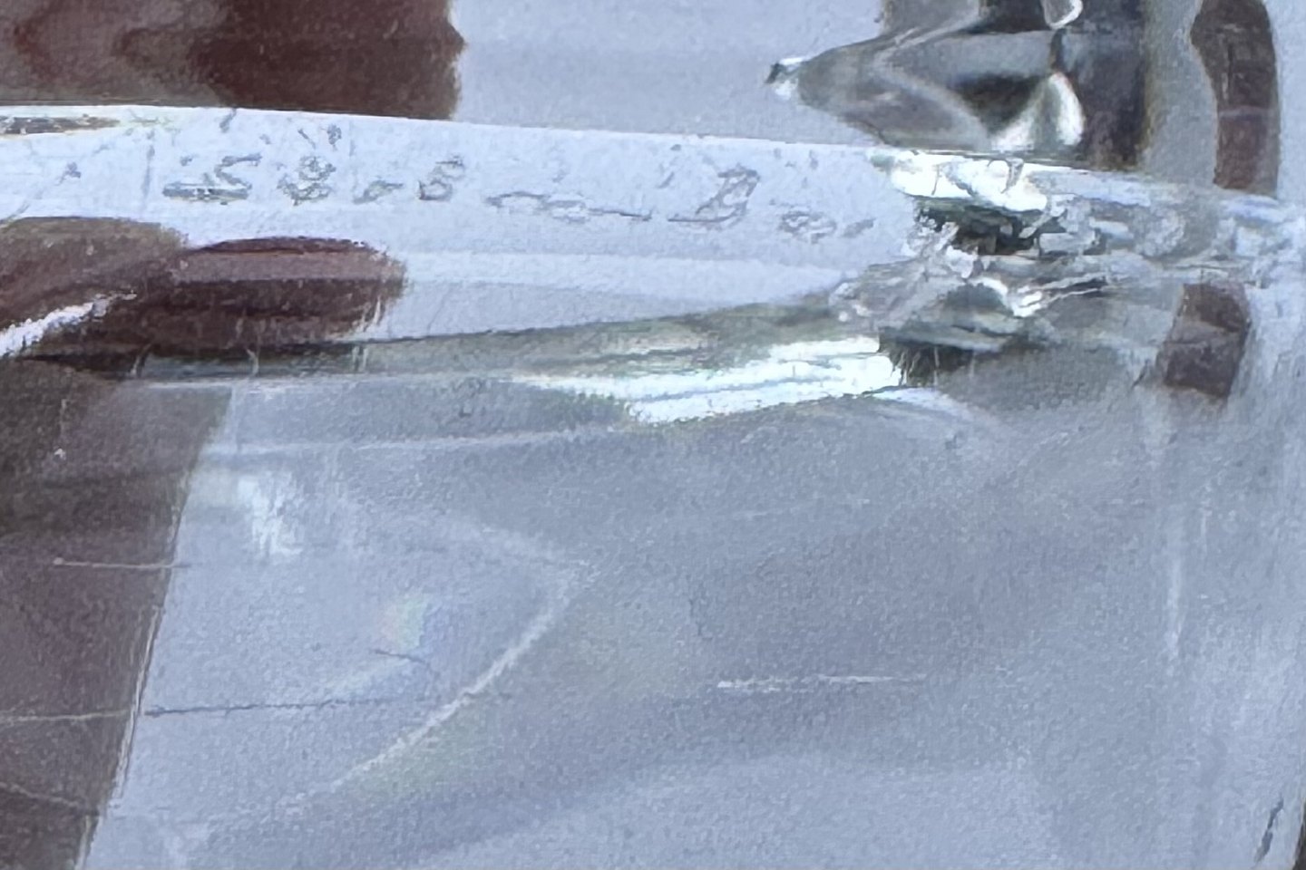 Isspand i glas fra svenske Strömbergshytten med greb i sterling sølv af E. Dragsted. I god stand.