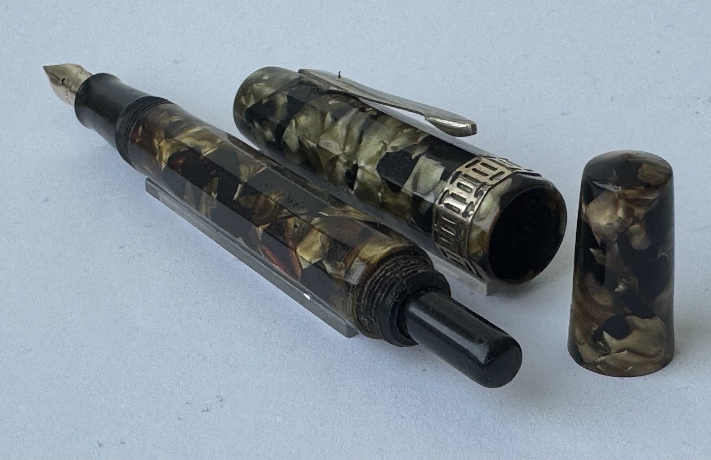 10-kantet grøn marmoreret Miller 697 fyldepen