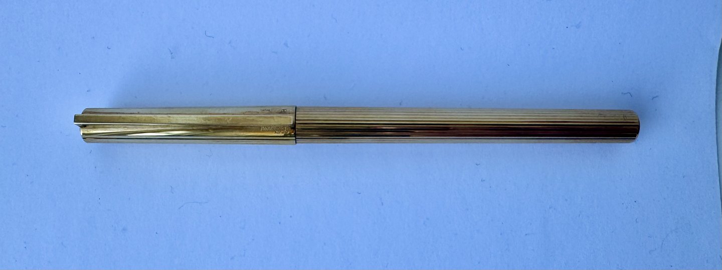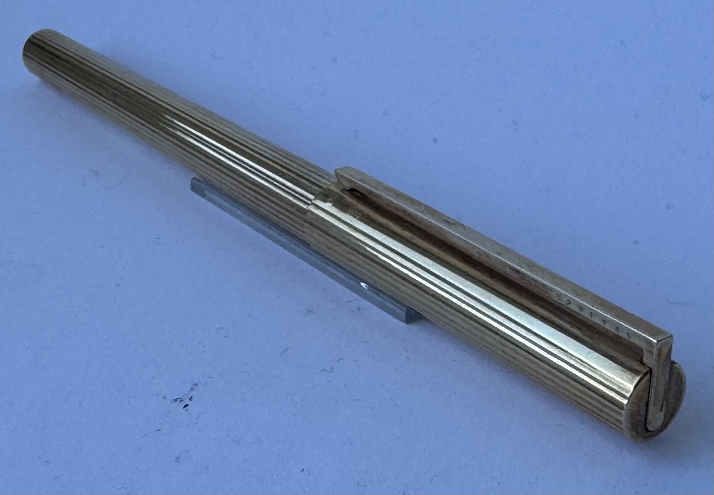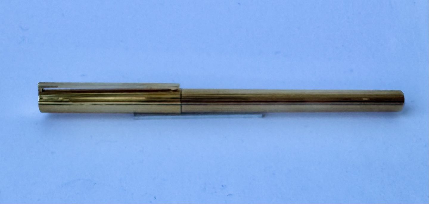 Slank S.T. Dupont De Paris 925 Sterling guld-double fyldepen fremstillet i 1970’erne. Fremstår i god og skriveklar stand, når der bliver indsat en ny blæk-patron. Ingen skader eller reparationer .L. 13,9 cm