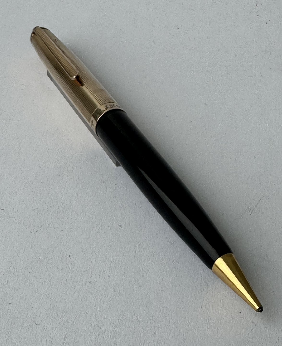 Black Montblanc pencil with gold double top. In very good condition. Ready to be used.