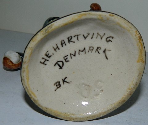 Keramisk figur af grønlandsk dreng, der er klar til at kaste snebold. I perfekt stand. Kunstnersignatur H. E. Hartving. 14 cm høj.