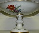 Opsats i porcelæn fra Royal Copenhagen i Fuld Saxisk Blomst. Fremstillet midt i 19. århundrede. Mærket med sort krone samt 1866. Er muligvis indgået det Danske Kongehus porcelænsbeholdning ! Stilken har været knækket. Brugsslid på guldet på kanten af skålen. 13½ cm høj og skålens diameter er 25 cm.
