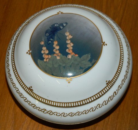 Skønvirke: Kgl. lågskål med dekoration af sommerfugl på låget