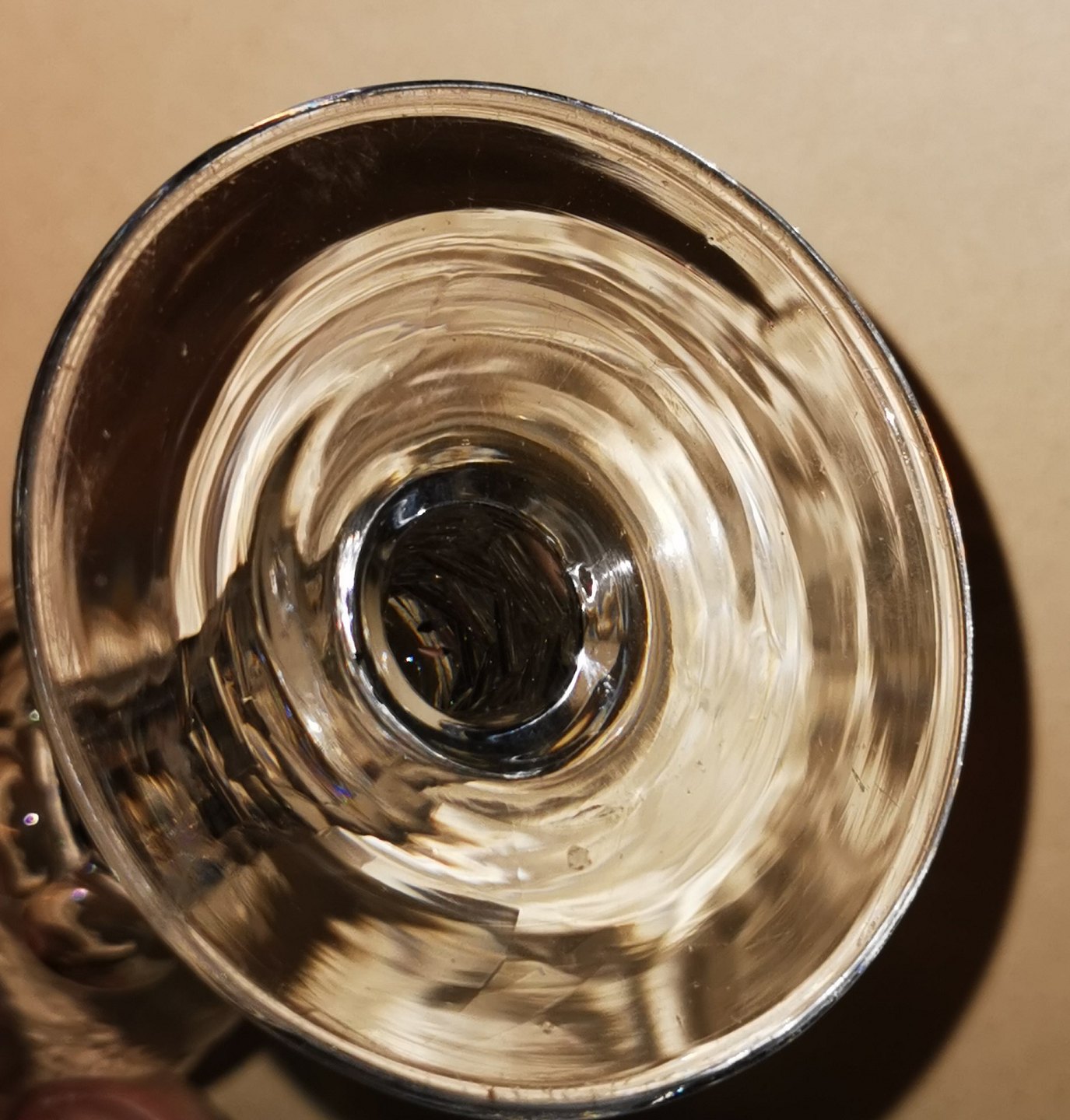 Smukt vinglas med facetteret stilk. Fremstillet i første halvdel af 19. århundrede i mellem-europa. I perfelt stand. Mål: H. 13½ cm