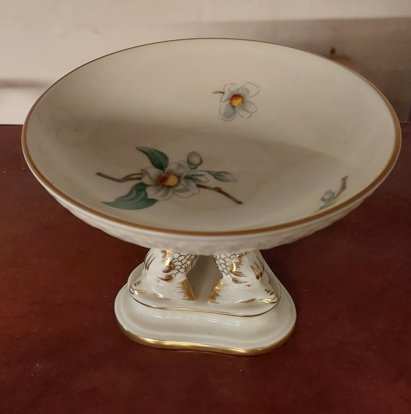 Bing & Grøndahl Heimdal opsats på fod i porcelæn. Fremstår i god stand. 1. sortering. Ingen skader eller reparationer. Fabriksmærket på bunden med B&G samt logo og modelnummer 66. Mål: 10 cm høj (3.93 inches) samt skålens diameter på 14 cm (5.51 inches).