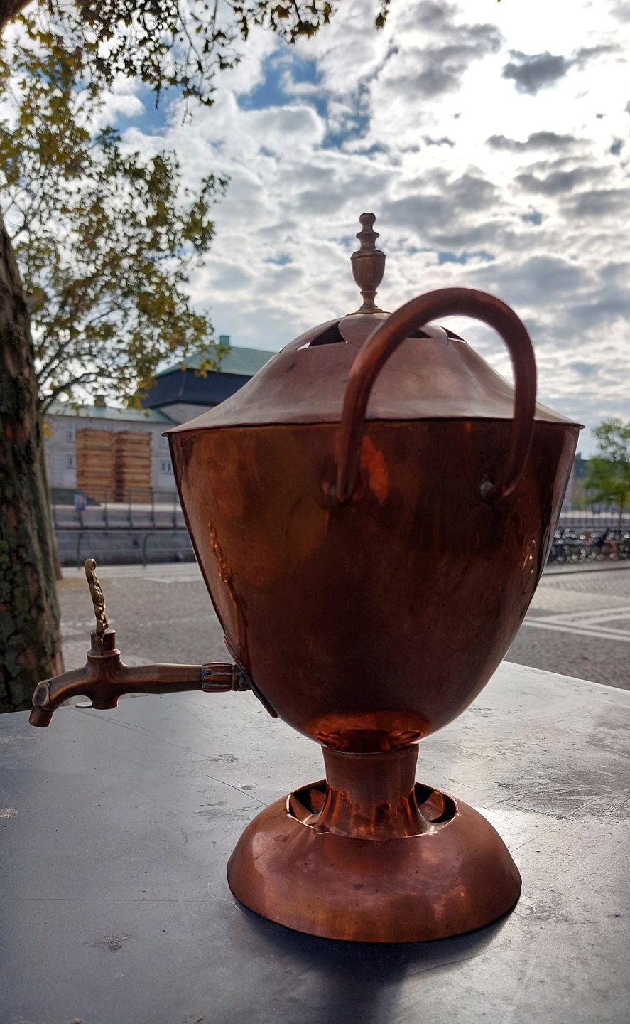 Samvar i købber. Fremstillet i Danmark. Stemplet på bunden 1790. Fremstår med brugs spor hvilket fremgår af fotos