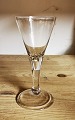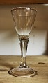 Vinglas på stilk. Såkaldt "Nøgen Jomfru" fra omkring 1800. Ombukket fod. Fremstår i god stand uden skader eller reparationer. H. 16 cm