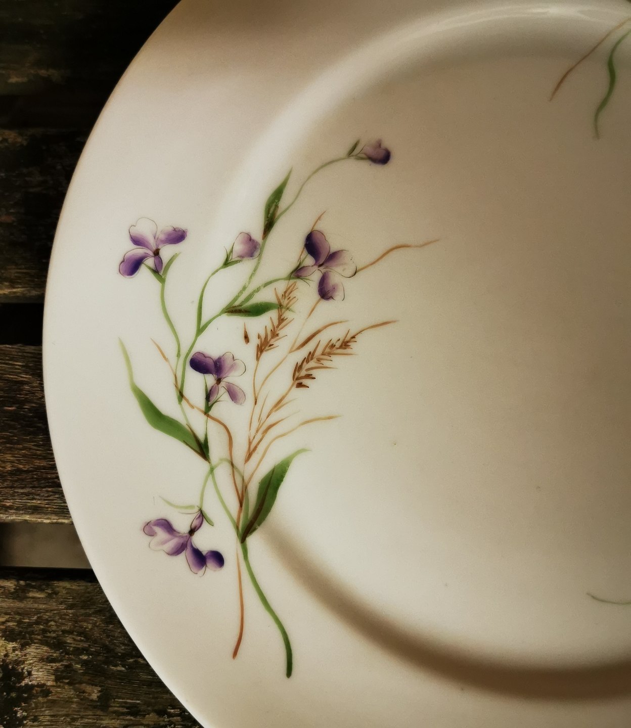 Skønvirkeperioden: Middagstallerken med blomsterdekoration fra omkring 1900.Fremstår i god stand. Fabriksmærket på bagsiden med B&G for Bing & Grøndahl. Alle i god stand. Ø. 24 cm.