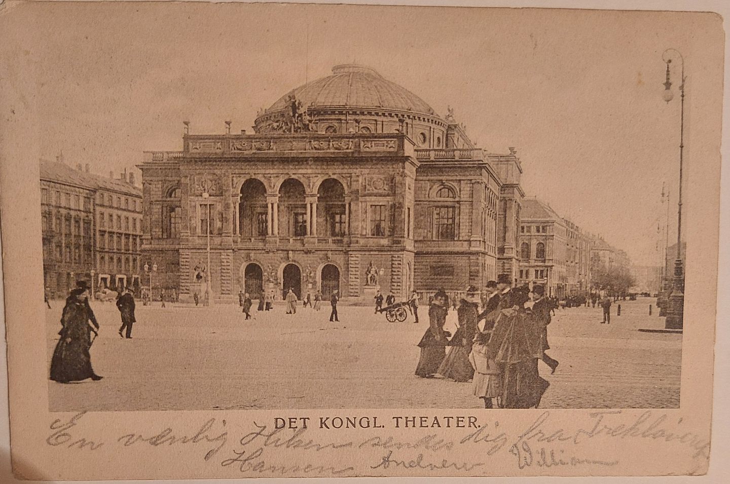 Postkort: Liv foran Det Kongelige teater i 1903