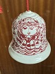 ORNAMENT TIL JULETRÆET: Juleklokke med rød dekoration designet af Bjørn Wiinblad. Kunstnerens signatur ses lodret til højre på klokken, på det sidste foto. I god stand. Mål: H. 6 cm åbningens diameter 6,5 cm