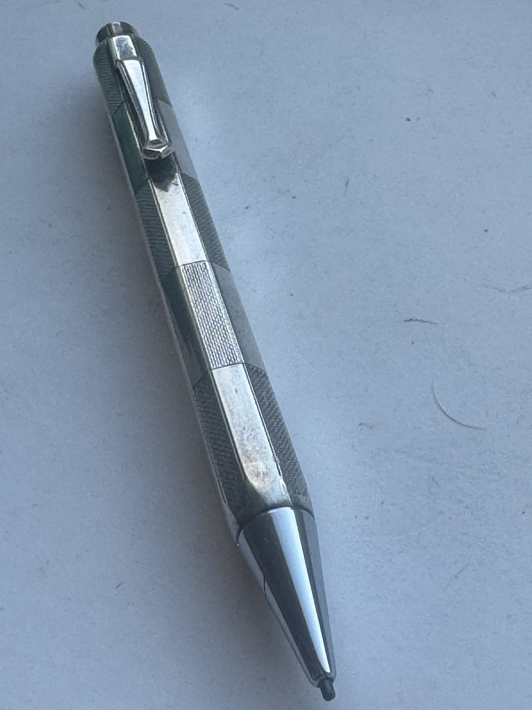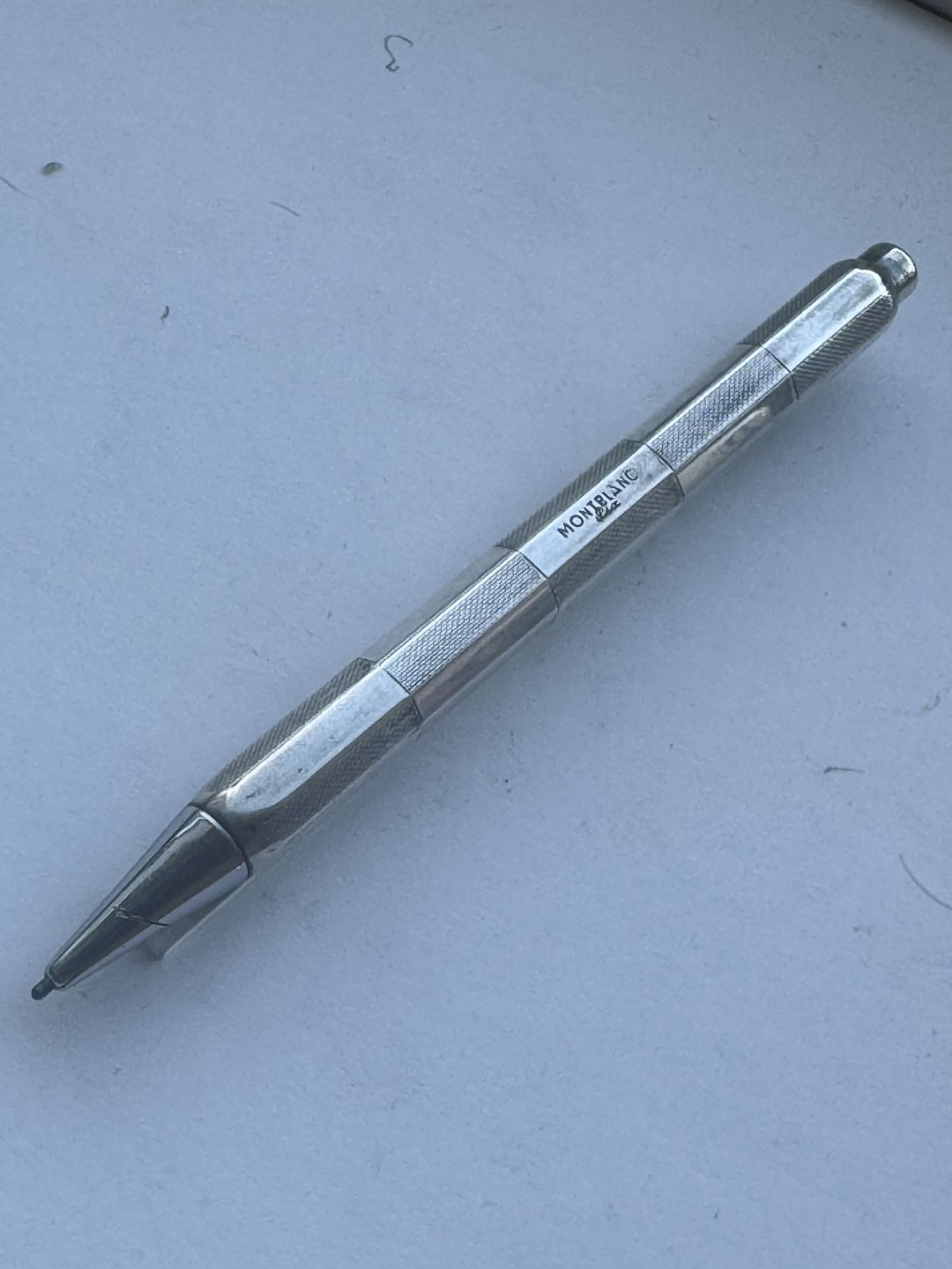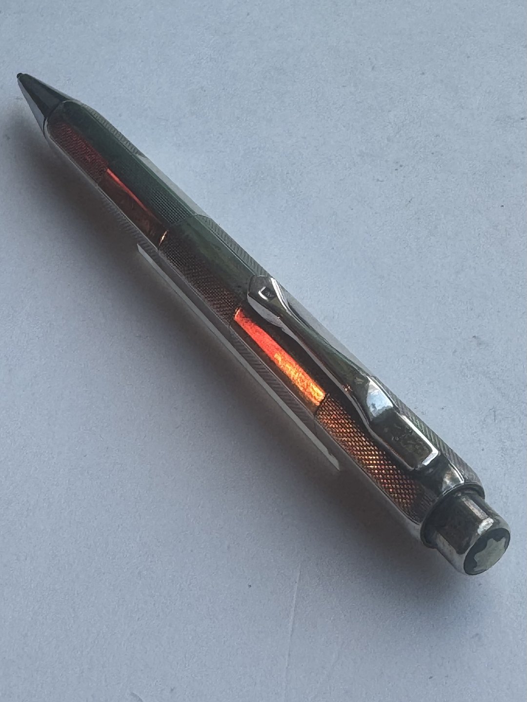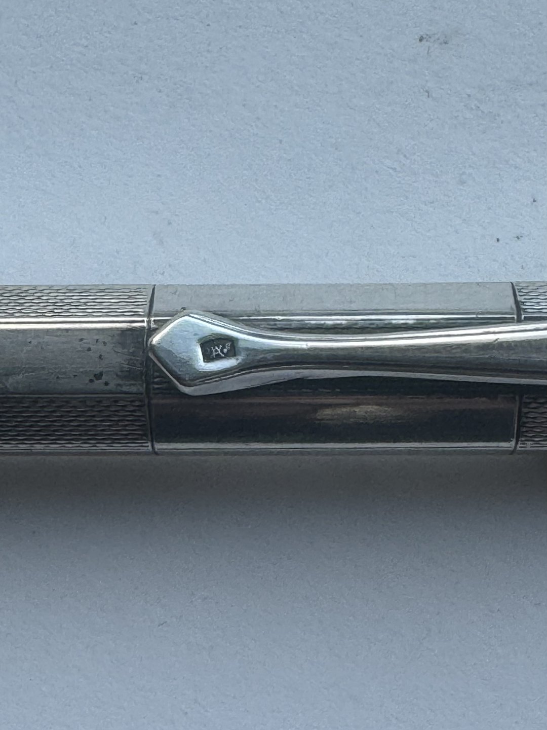 REN ART DECO STIL: Otte-kantet Montblanc Pix skrueblyant i Sterling sølv. Fremstår i god og funktionsduelig stand. Ingen skader. Fabiksmærket på siden. Sølvstemplet på clip’en. Længde: 11,8 cm