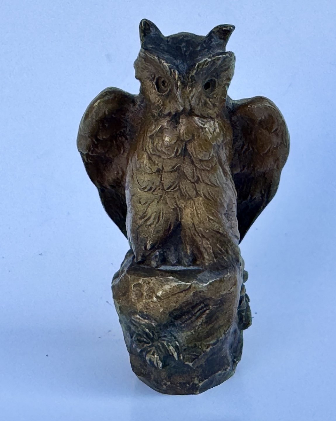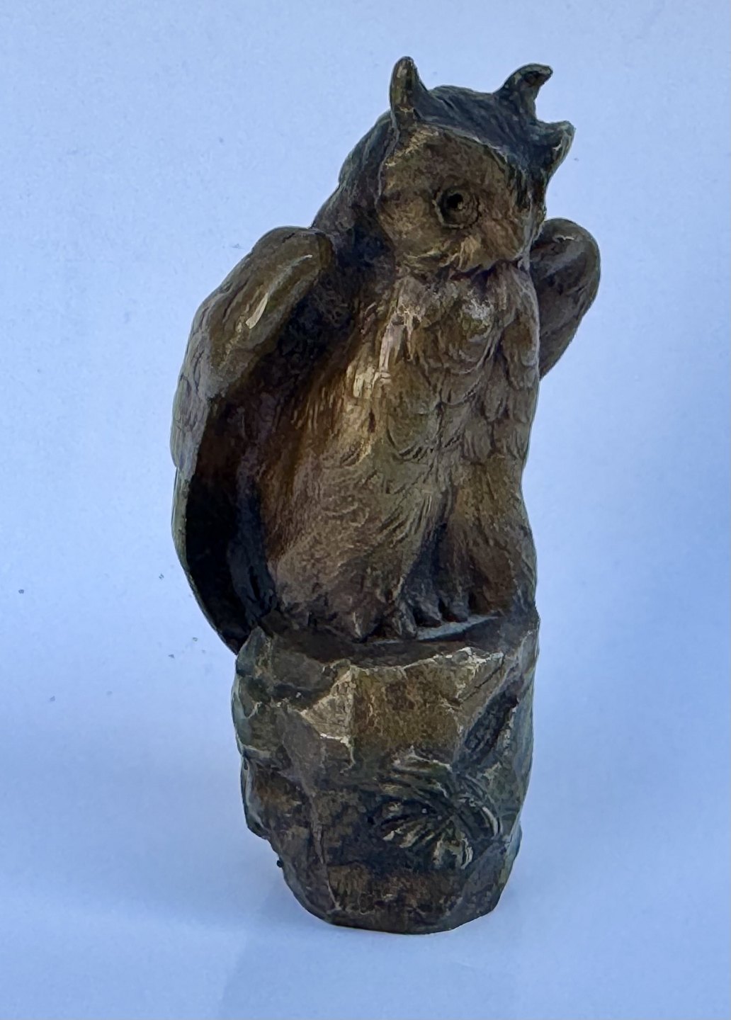 Lille men meget elegant figur af ugle i bronze. Mange fine detaljer. I perfekt stand. Ikke mærket. H. 6,2 cm