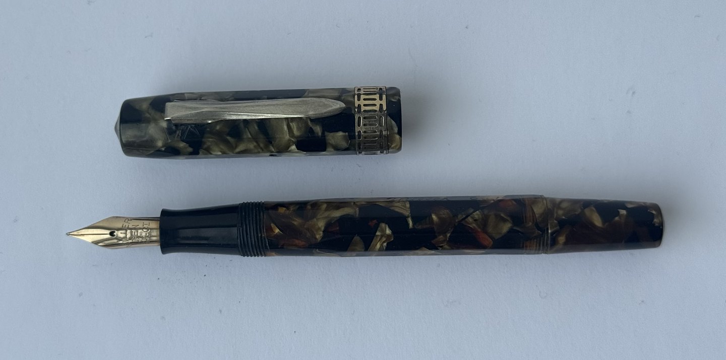 10-kantet grøn marmoreret Miller 697 fyldepen