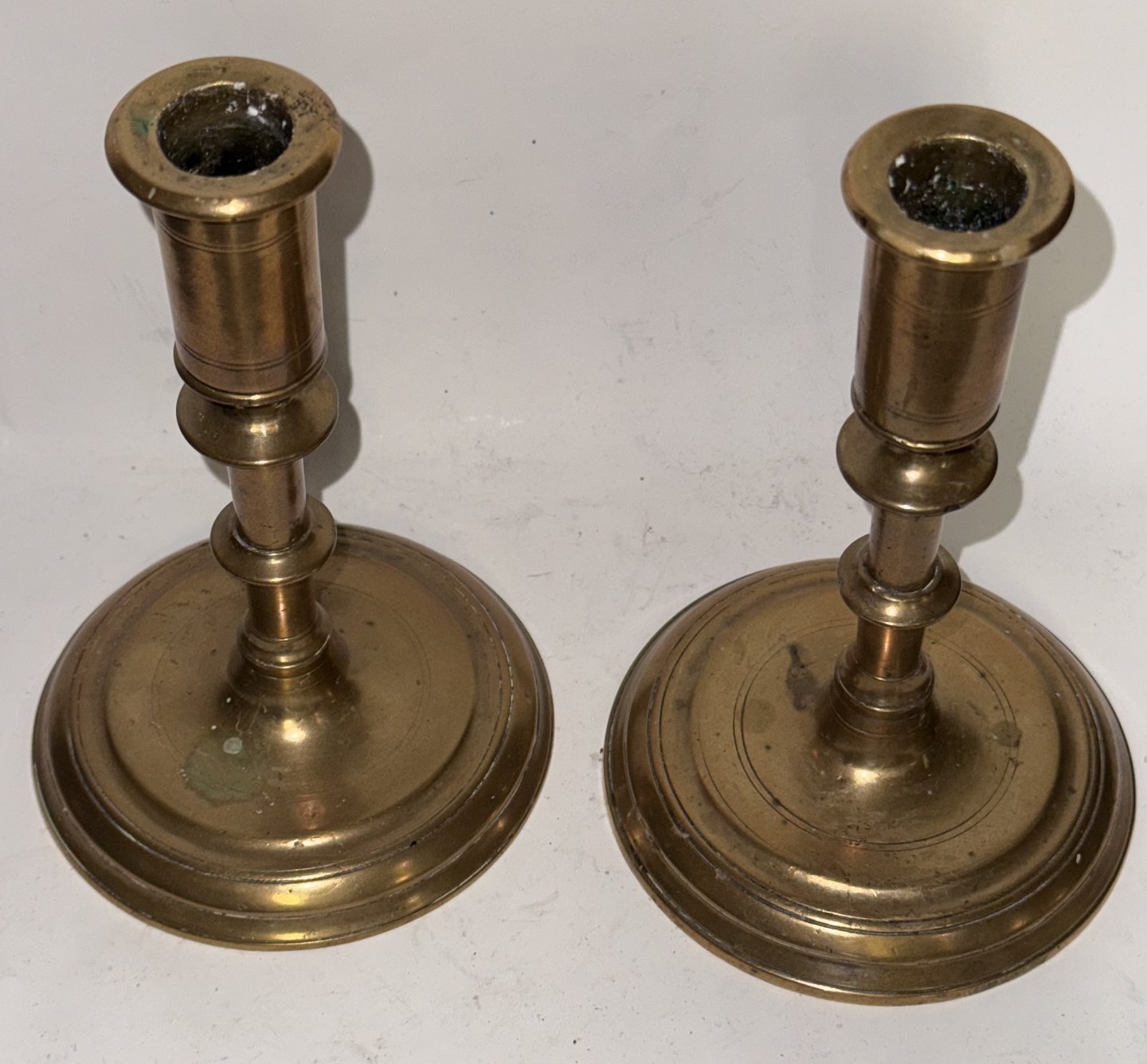 Par antikke messing lysestager i barok-stil